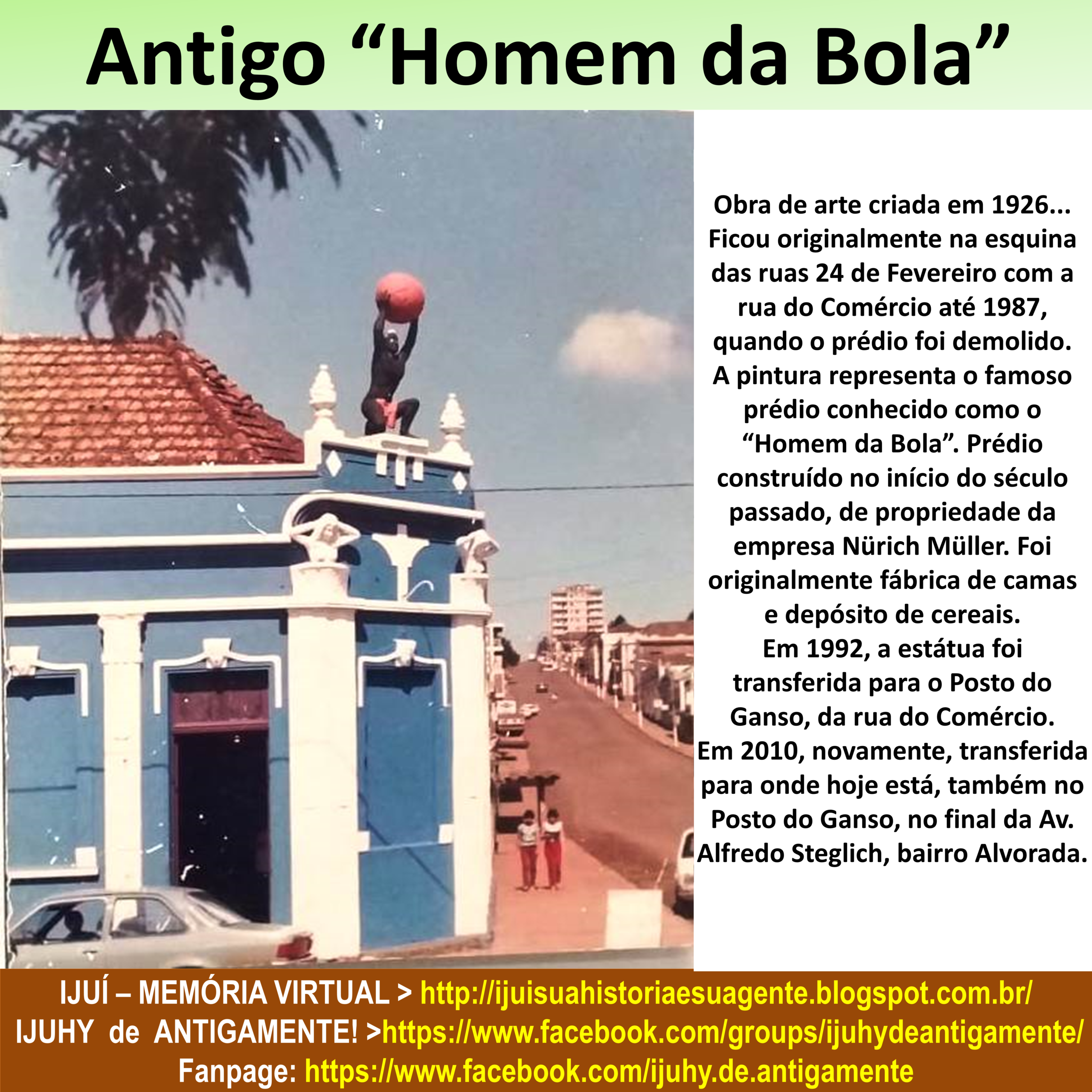 O prédio do “Homem da Bola”, conhecido pela maioria dos antigos moradores de Ijuí, localizava-se na esquina das ruas do Comércio e 24 de Fevereiro, em frente ao Arroio do Moinho (Canal da Avenida, hoje coberto). Foi provavelmente construído em 1922 e pertencia ao imigrante alemão Eduardo Knebel. Inicialmente, o