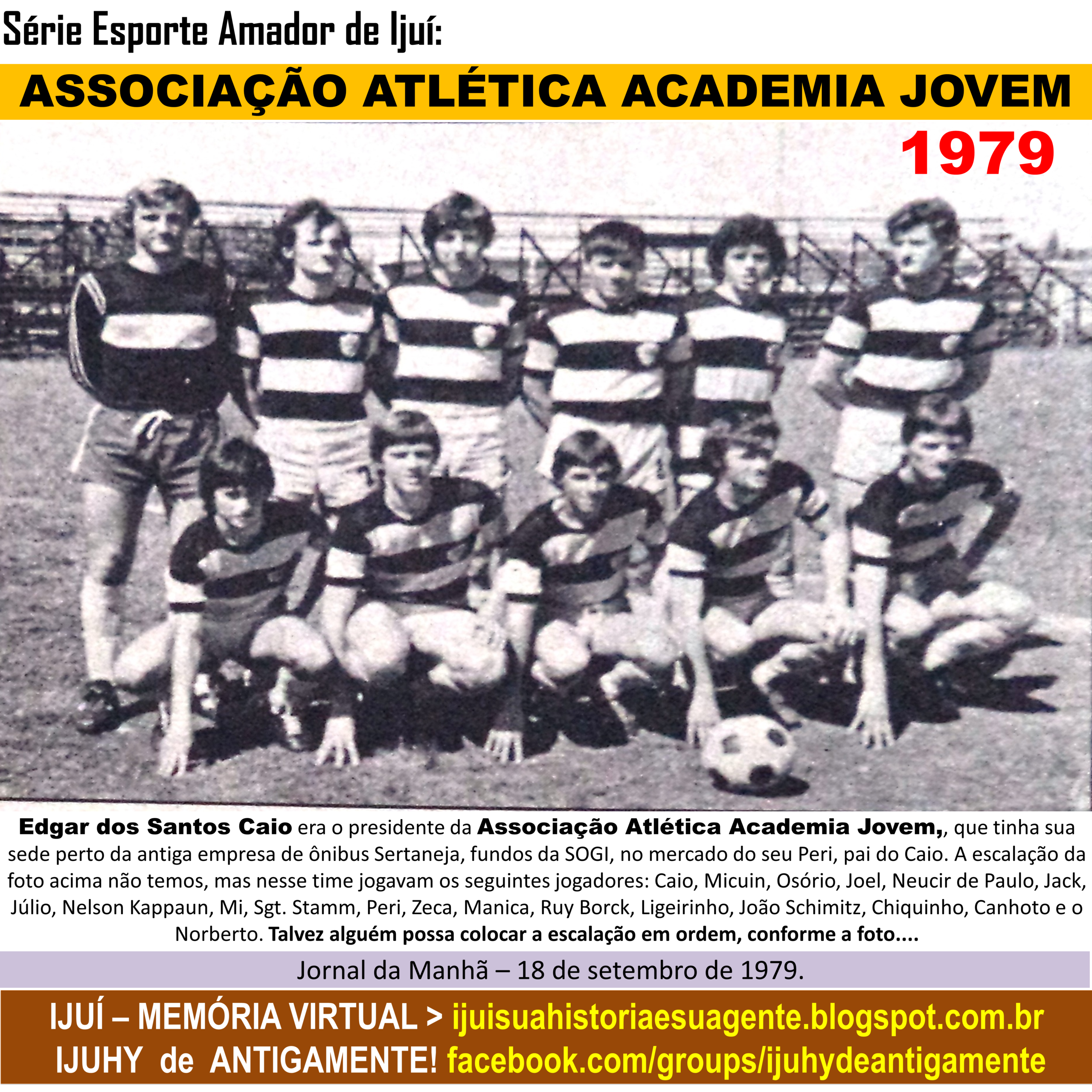 Espaço dos projetos IJUÍ – MEMÓRIA VIRTUAL e  IJUHY de ANTIGAMENTE, dedicado à divulgação e à socialização de fotografias e documentos históricos, fatos, acontecimentos, curiosidades e informações que preservam, valorizam e tornam acessível a história da cidade de Ijuí, RS, Brasil, promovendo o acesso público à memória coletiva, o compartilhamento do conhecimento histórico e o fortalecimento da identidade local para as atuais e futuras gerações.